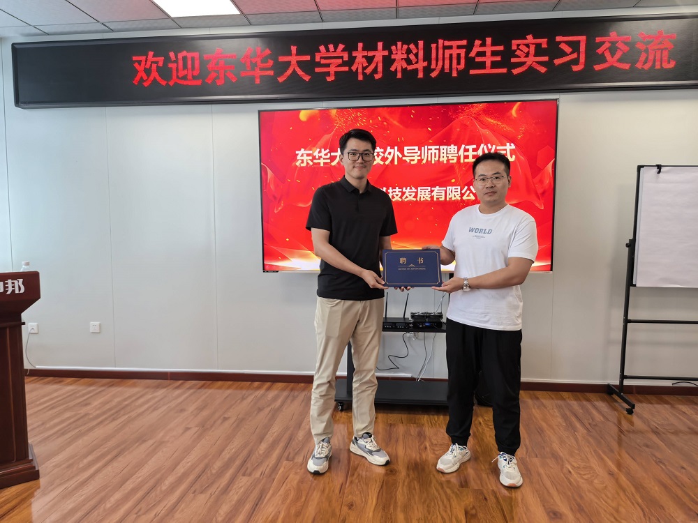 及向潘鵬飛、王少鵬頒發(fā)了《東華大學(xué)本科生校外導(dǎo)師聘書》。