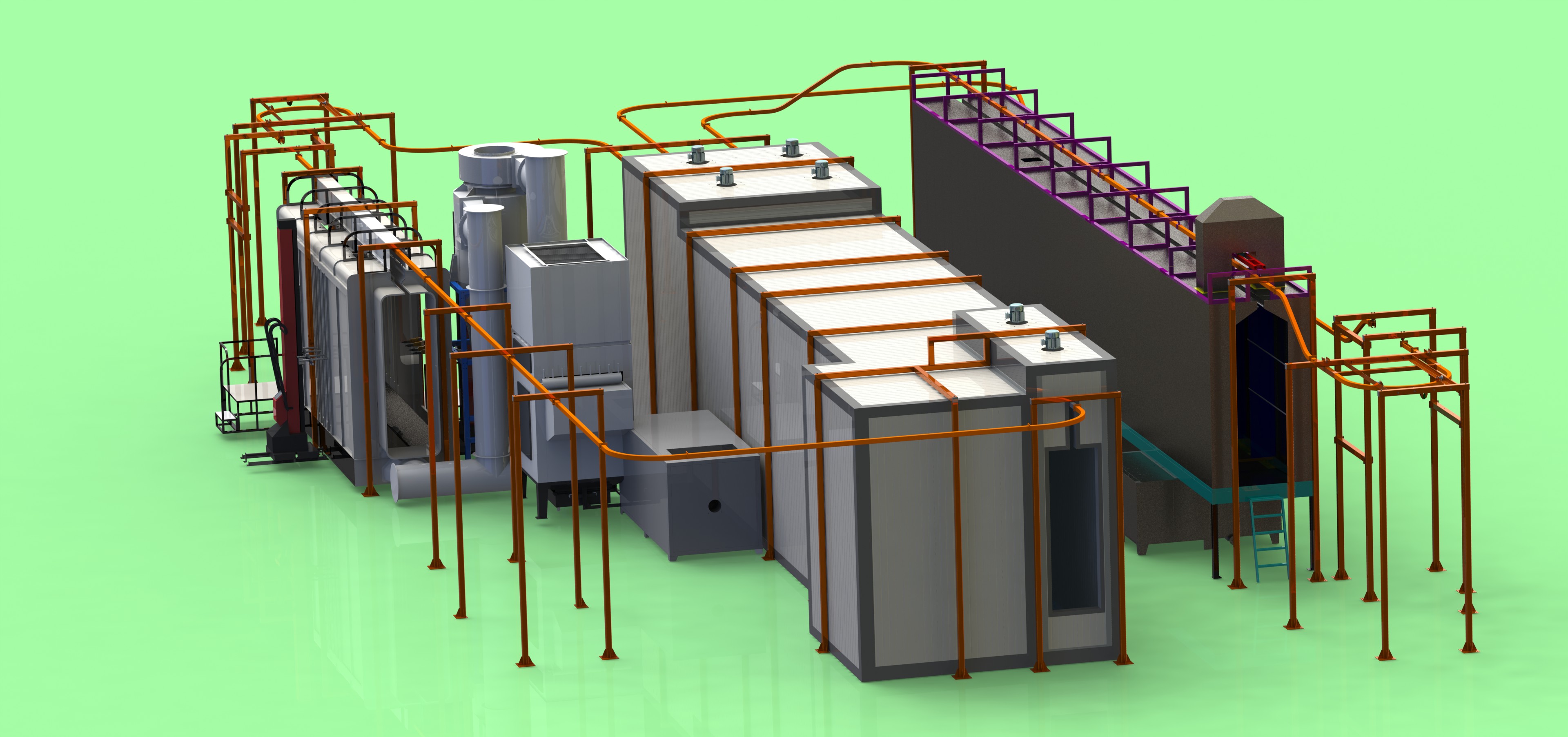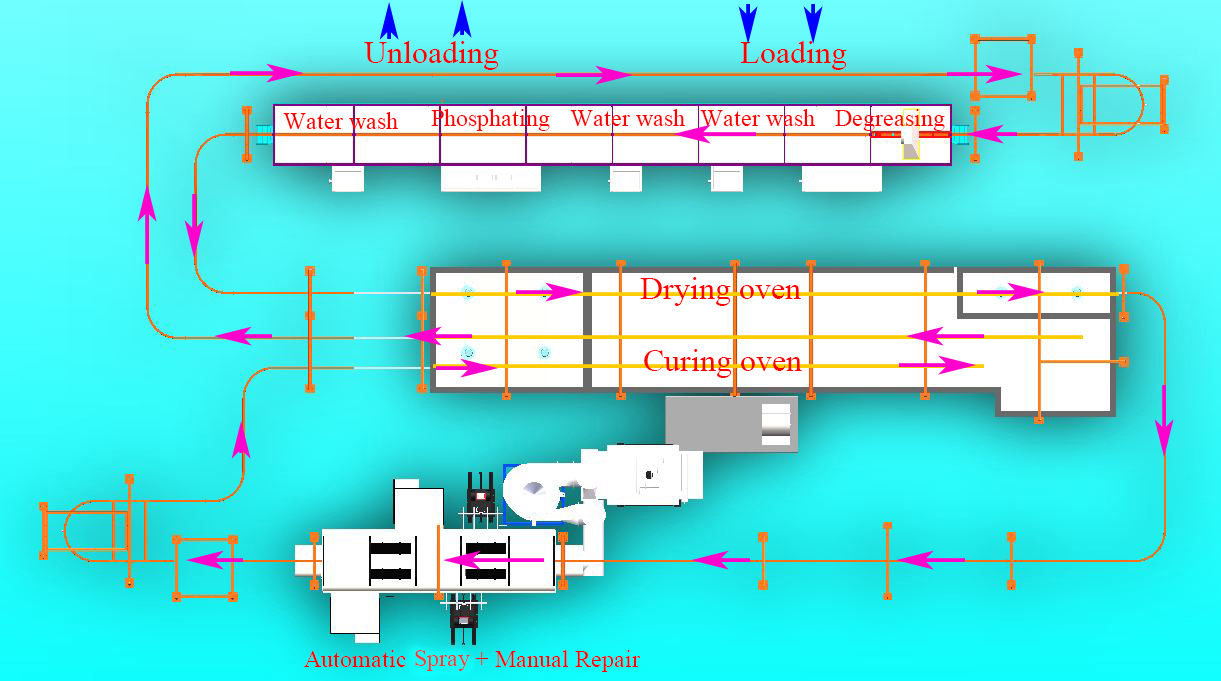 (1)       前處理:除掉工件表面的油污、灰塵、銹跡,并在工件表面生成一層抗腐蝕且能夠增加噴涂涂層附著力的“磷化層”或者“硅烷層”。
